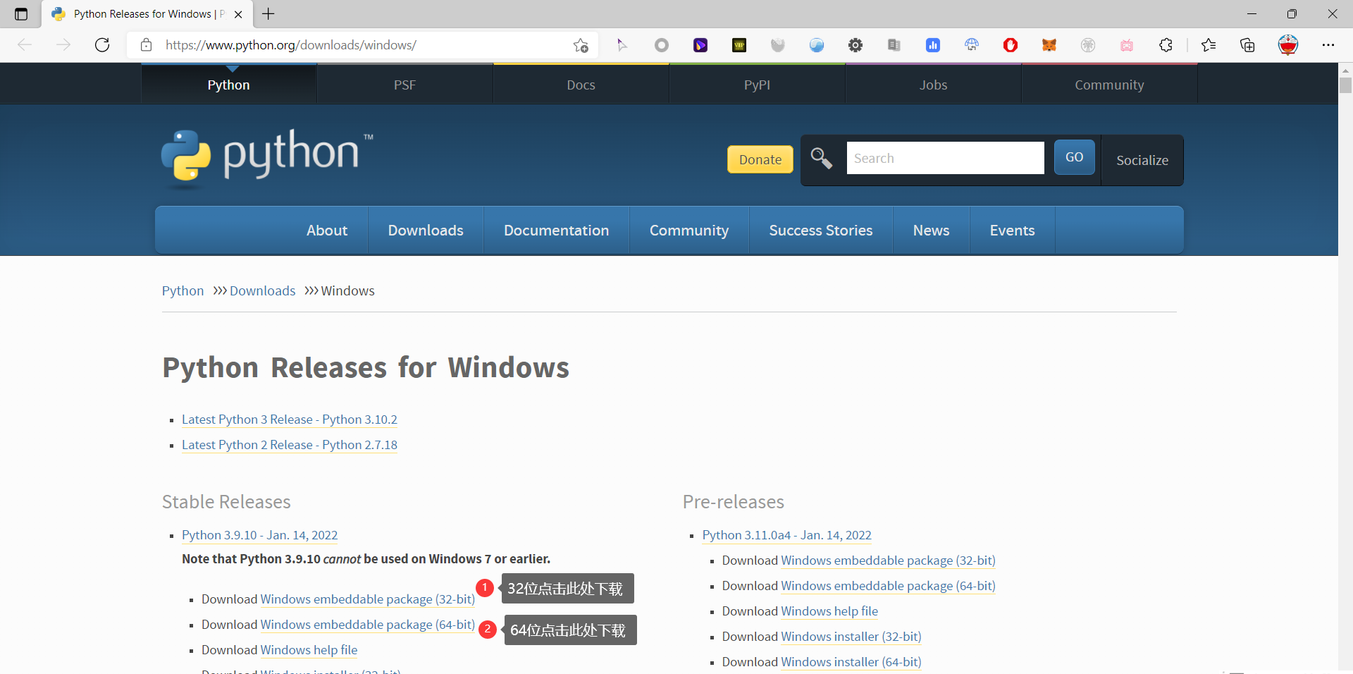 看自己电脑是32位还是64位处理器,在Stable Releases(稳定版本)一栏中下载对应的文件