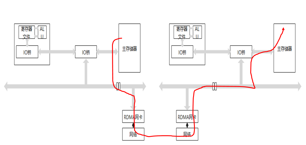 本端节点通过RDMA可以“直接”访问远端节点的内存。所谓直接,指的是可以像访问本地内存一样,绕过传统以太网复杂的TCP/IP网络协议栈读写远端内存,而这个过程对端是不感知的,而且这个读写过程的大部分工作是由硬件而不是软件完成的。