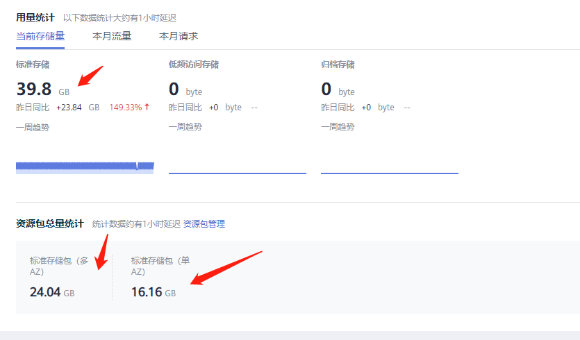 在张小白OBS的套餐中,单AZ和多AZ都是40G,但是目前总容量已经用到了39.8G。看来得找个剩余比较大的空间才行,否则估计也收费不菲。
