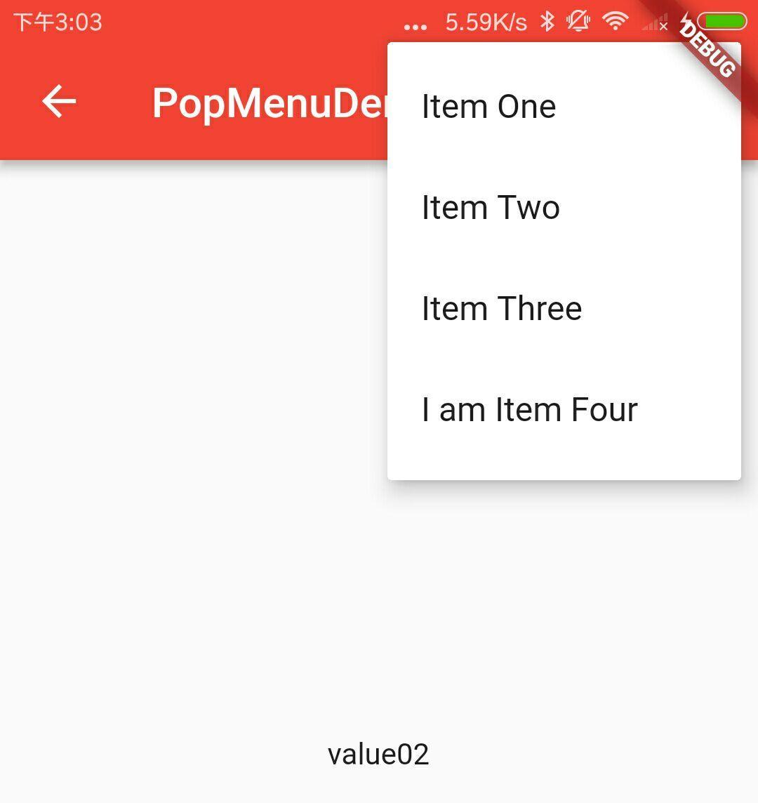 new PopupMenuItem<String>( value: 'value03', child: new Text('Item Three')),
