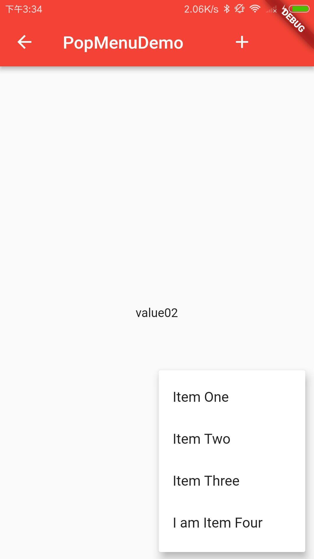 new PopupMenuItem<String>( value: 'value04', child: new Text('I am Item Four'))