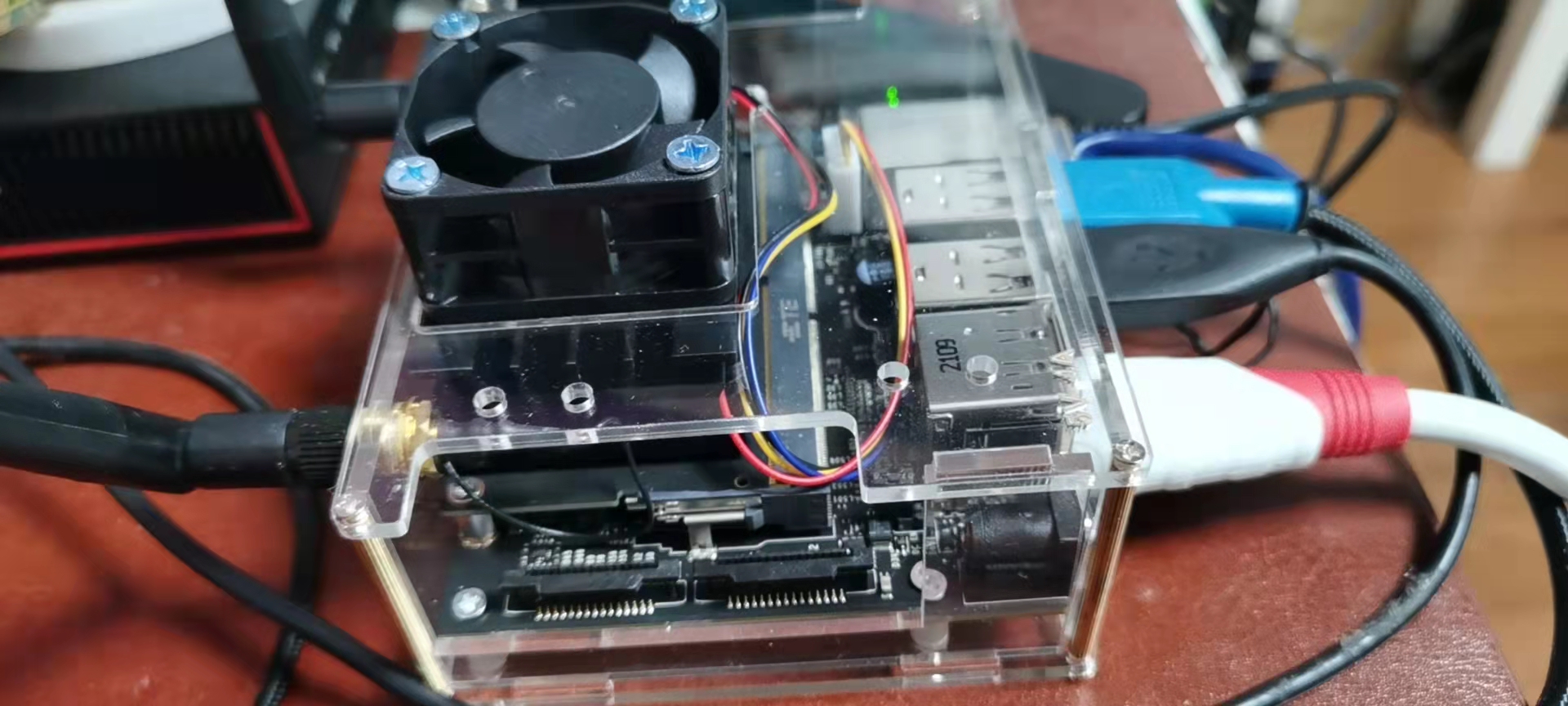 然后在USB口上接入鼠标、键盘,并在网口接入网线,在HDMI口接入电视机(貌似有点奢侈)