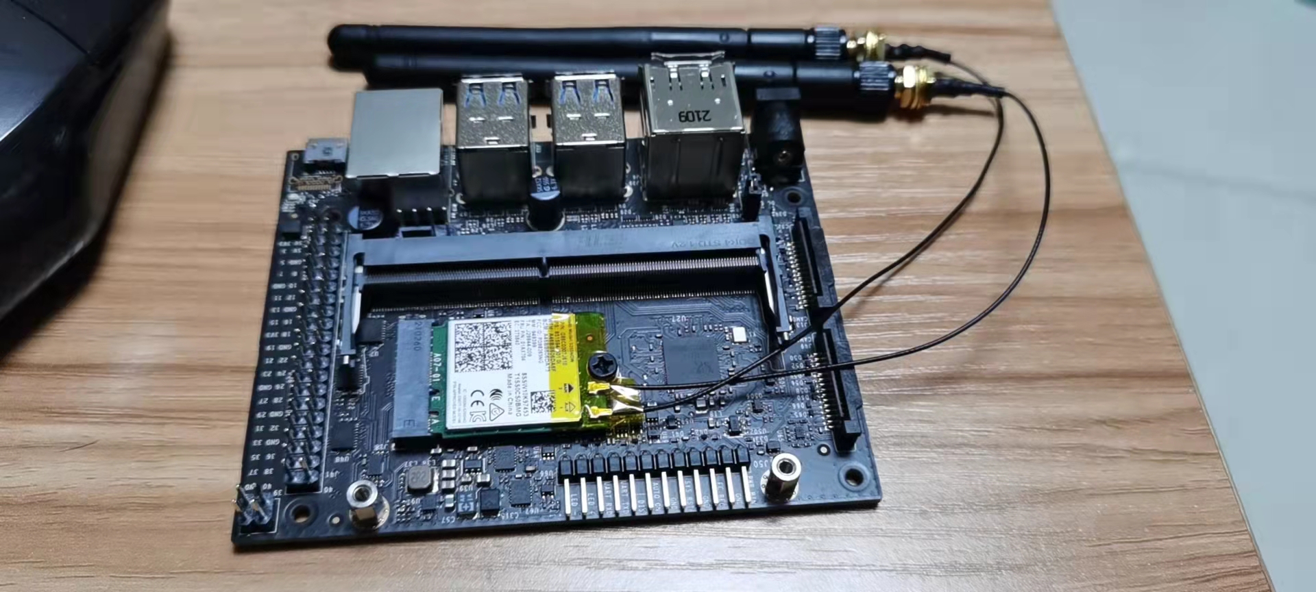 将右边另购的无线网卡插入上图左边的插槽,并用螺丝拧紧。