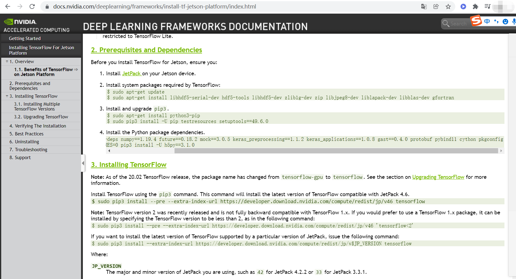打开 https://docs.nvidia.com/deeplearning/frameworks/install-tf-jetson-platform/index.html