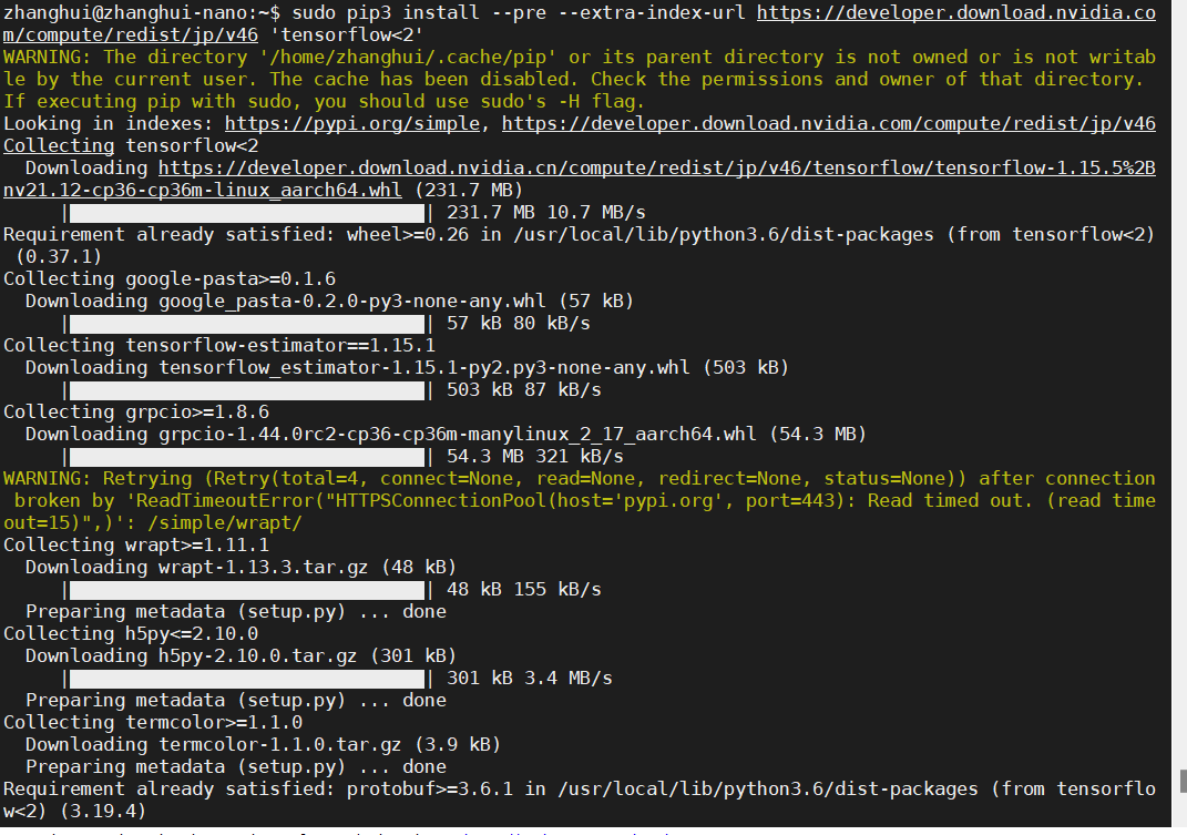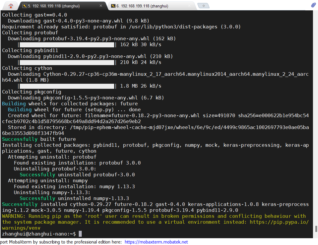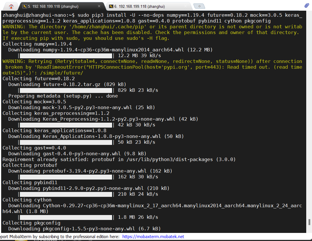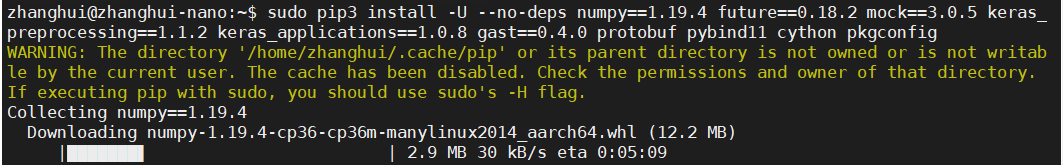 sudo pip3 install -U --no-deps numpy==1.19.4 future==0.18.2 mock==3.0.5 keras_preprocessing==1.1.2 keras_applications==1.0.8 gast==0.4.0 protobuf pybind11 cython pkgconfig