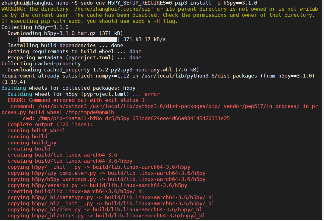 sudo env H5PY_SETUP_REQUIRES=0 pip3 install -U h5py==3.1.0