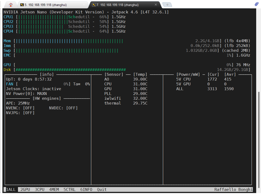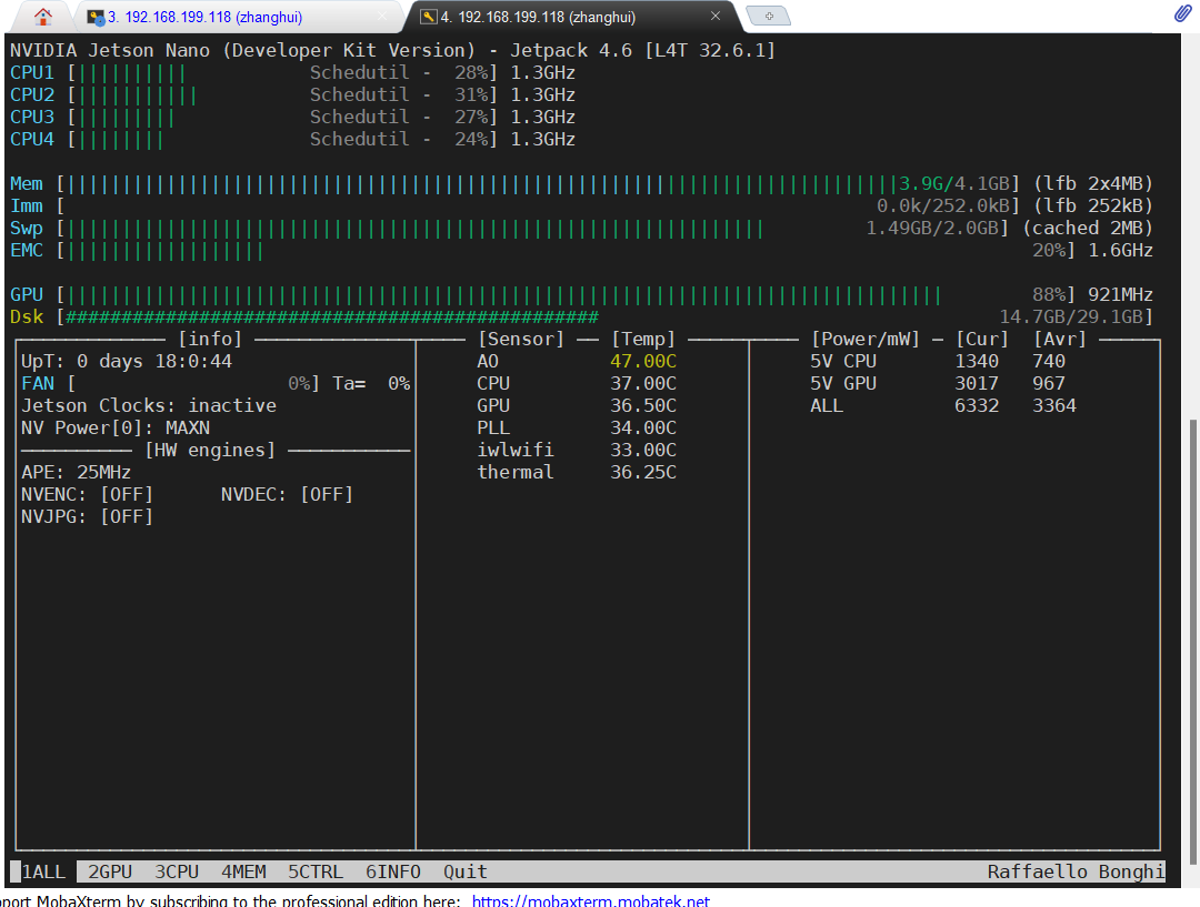 jtop会显示nano的使用情况: