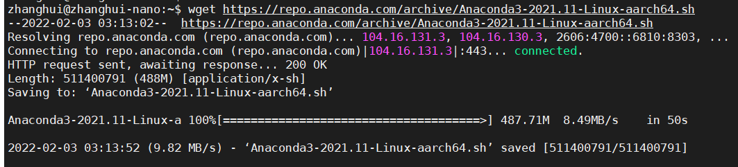 wget https://repo.anaconda.com/archive/Anaconda3-2021.11-Linux-aarch64.sh