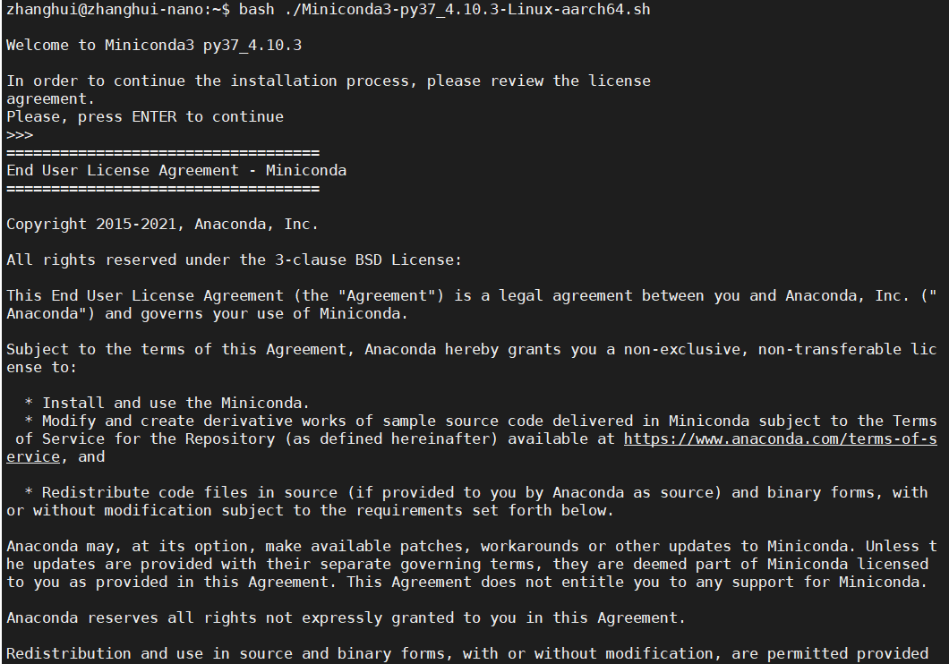 bash ./Miniconda3-py37_4.10.3-Linux-aarch64.sh