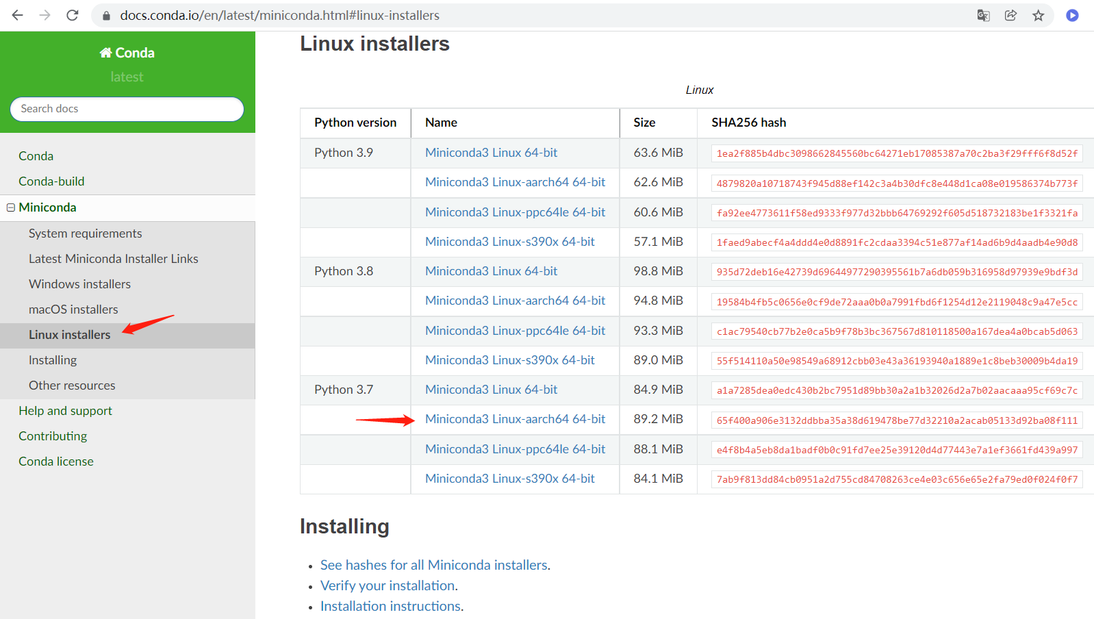 打开 https://docs.conda.io/en/latest/miniconda.html#linux-installers