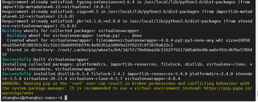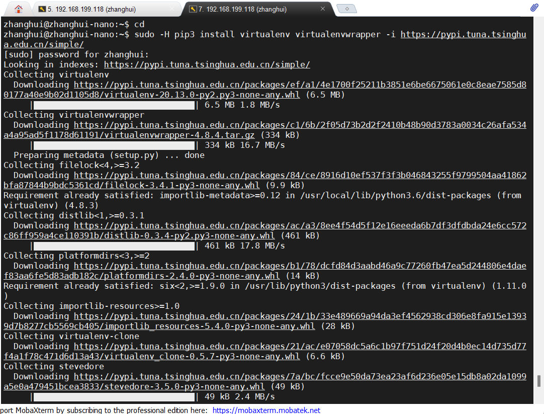 sudo -H pip3 install virtualenv virtualenvwrapper -i https://pypi.tuna.tsinghua.edu.cn/simple/