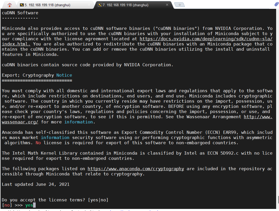 输入yes,回车: