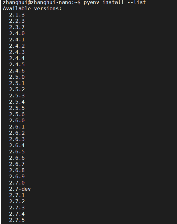 pyenv install --list