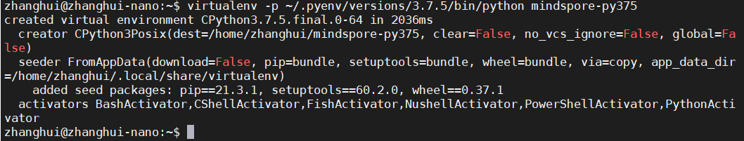 virtualenv -p ~/.pyenv/versions/3.7.5/bin/python mindspore-py375