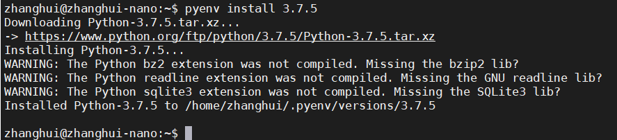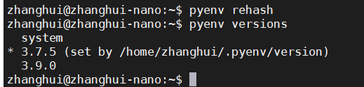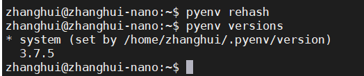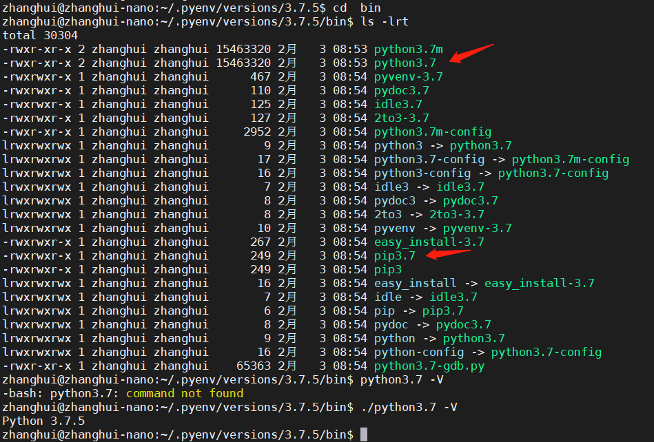 可以到 /home/zhanghui/.pyenv/versions/3.7.5 目录下看到Python的版本: