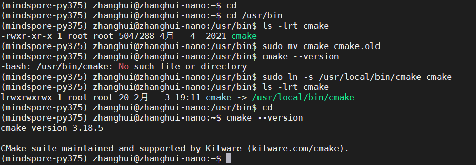将/usr/bin下的cmake改名,重试:
