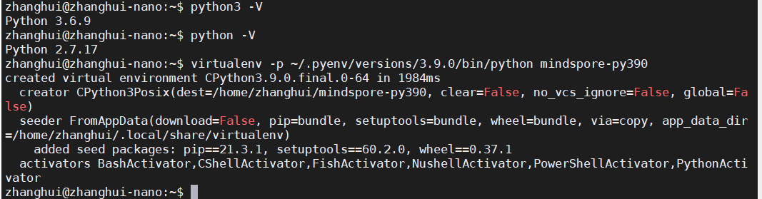 virtualenv -p ~/.pyenv/versions/3.9.0/bin/python mindspore-py390