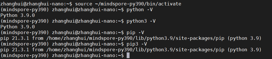 source ~/mindspore-py390/bin/activate