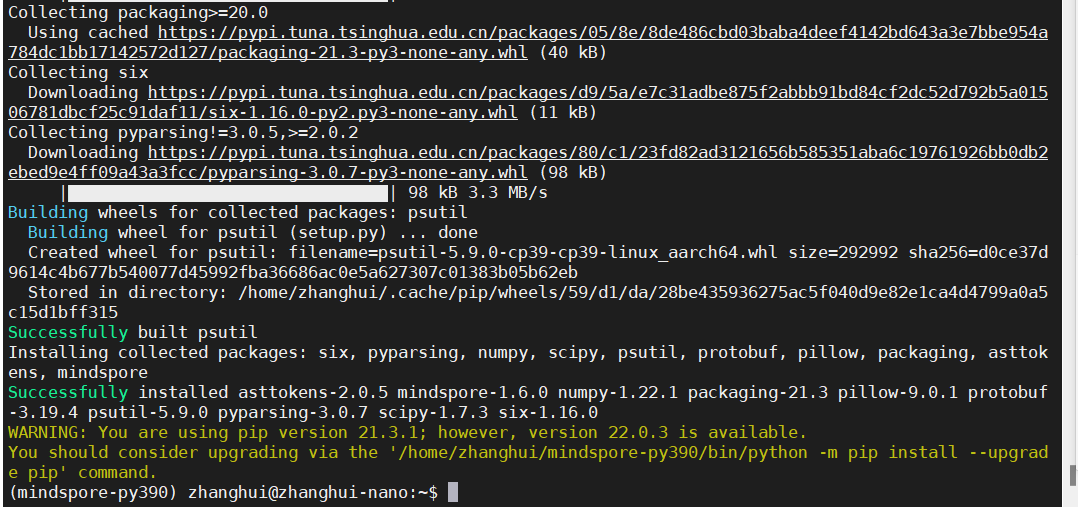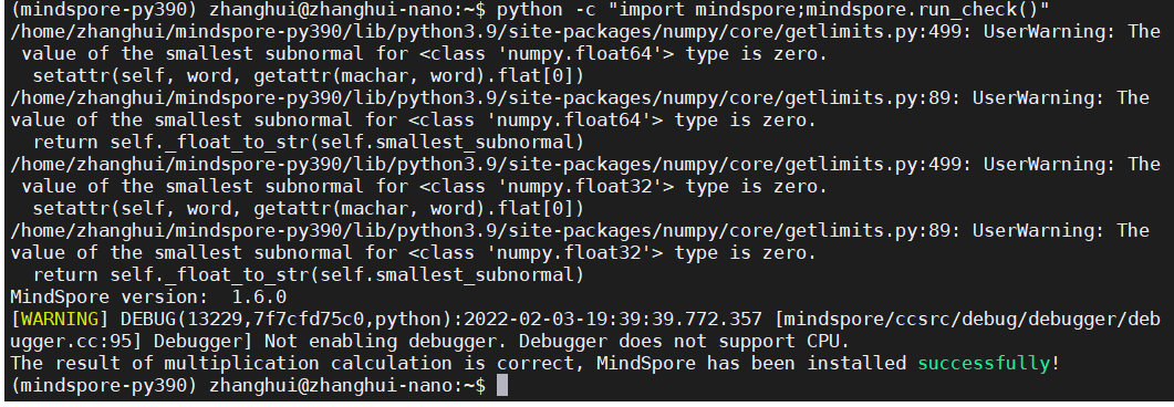 安装mindspore cpu(aarch64) 1.6.0版本: