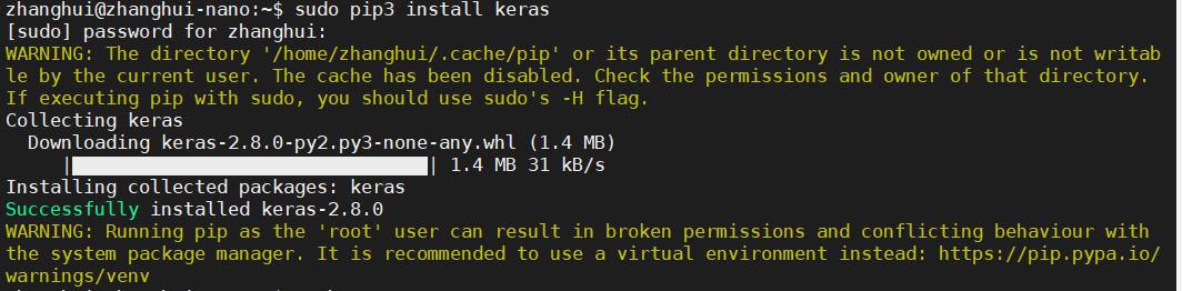 sudo pip3 install keras