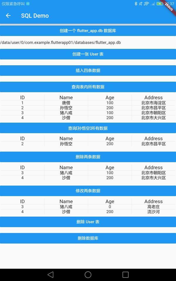 sqflite 创建数据库时优先创建一个路径,用来存储数据库。注:对于数据库的操作都是耗时操作,都要通过 async 和 await 异步处理。