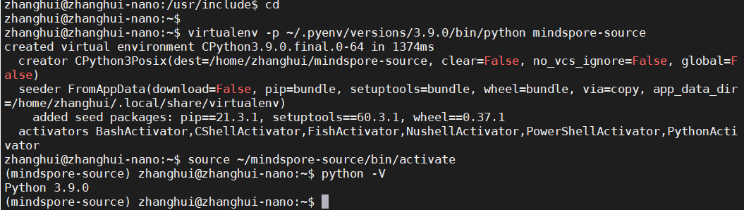 virtualenv -p ~/.pyenv/versions/3.9.0/bin/python mindspore-source