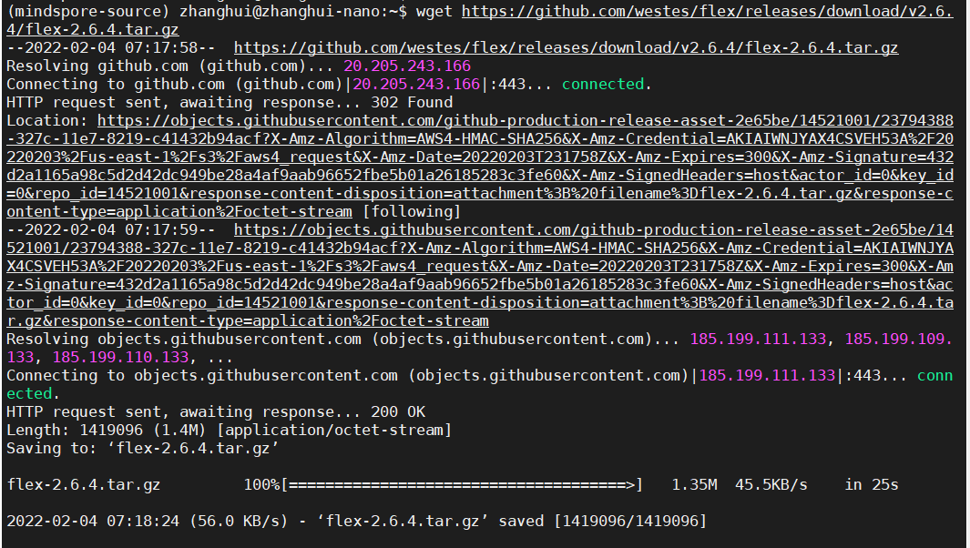wget https://github.com/westes/flex/releases/download/v2.6.4/flex-2.6.4.tar.gz