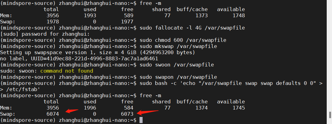 sudo bash -c 'echo "/var/swapfile swap swap defaults 0 0" >> /etc/fstab'