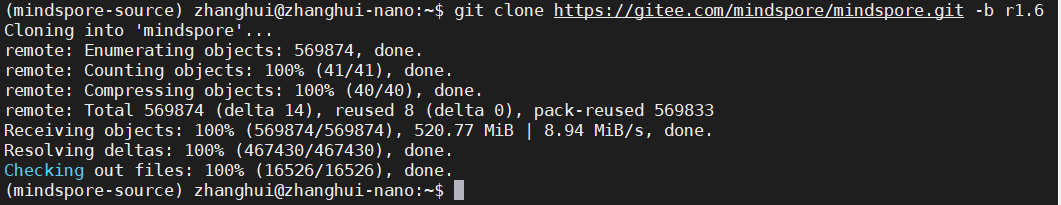 git clone https://gitee.com/mindspore/mindspore.git -b r1.6