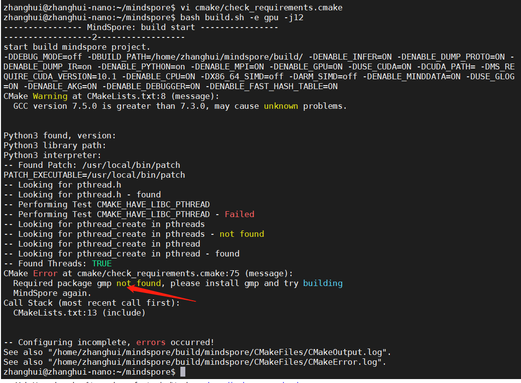 终于没报python3.7.5找不到的错了,报了gmp找不到的错。