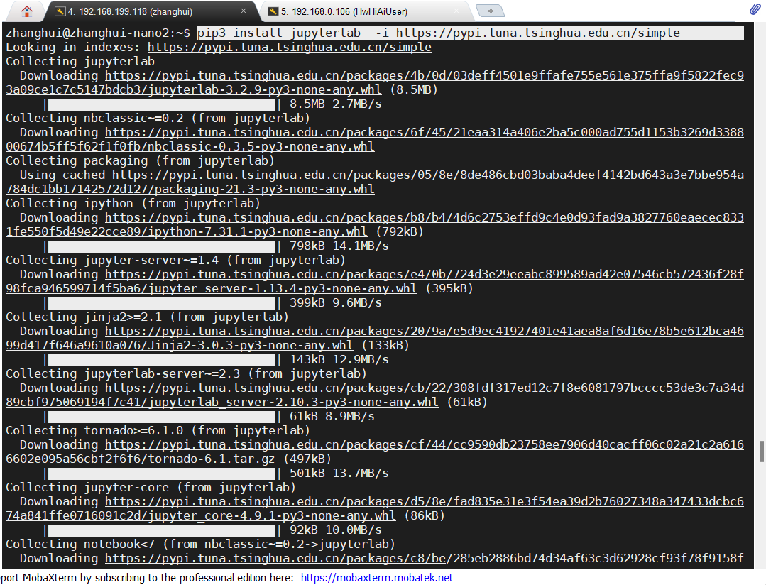 pip3 install jupyterlab -i https://pypi.tuna.tsinghua.edu.cn/simple