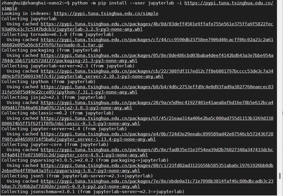 python -m pip install --user jupyterlab -i https://pypi.tuna.tsinghua.edu.cn/simple