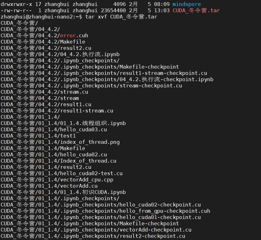 将 CUDA_冬令营.tar 上传到服务器,并解压: