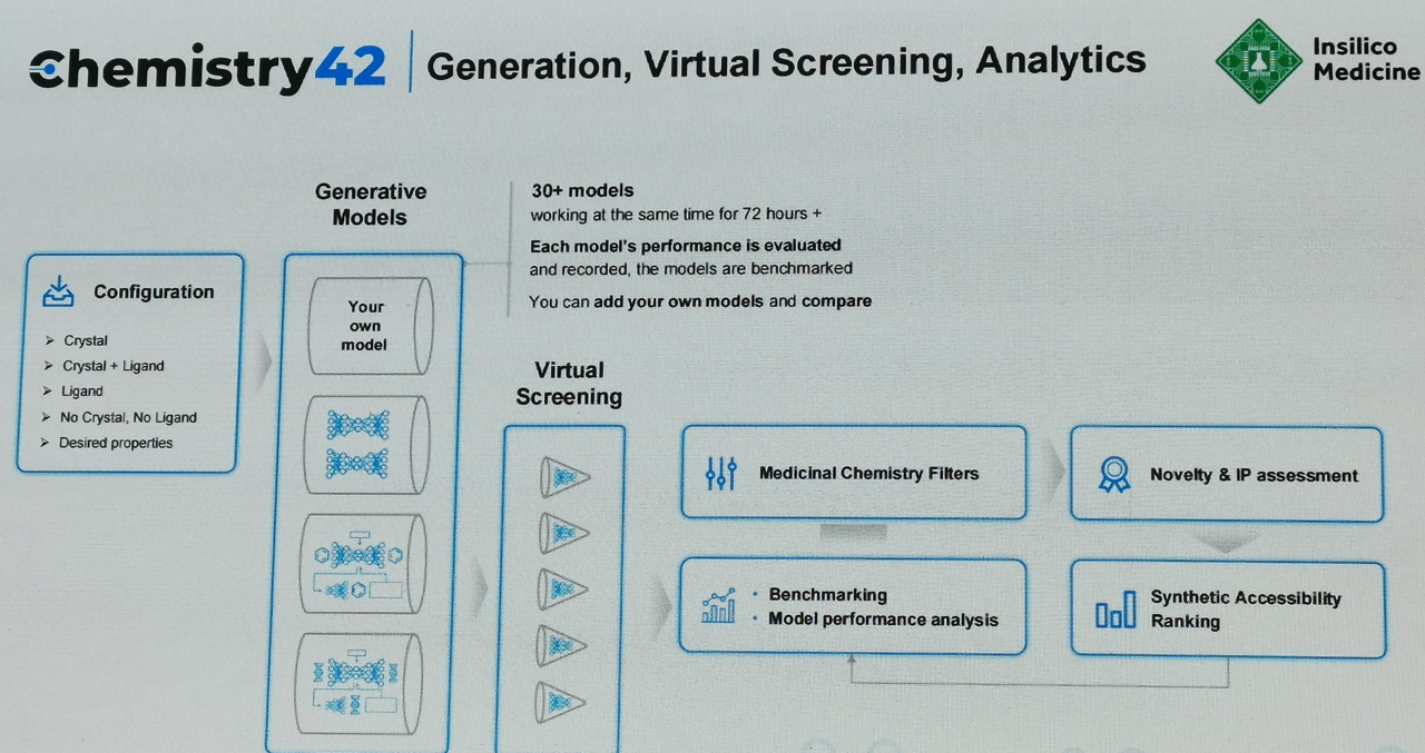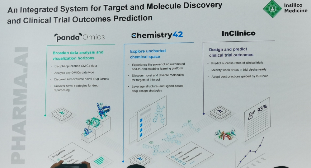 总体介绍:用于靶点发现的PandaOmics,用于分子生成的Chemistry42、用于临床试验设计和预测的InClinico。