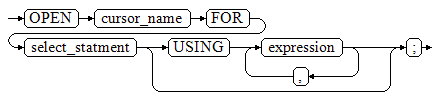 通过OPEN FOR语句打开动态游标,通过USING对SELECT语句进行动态绑定。