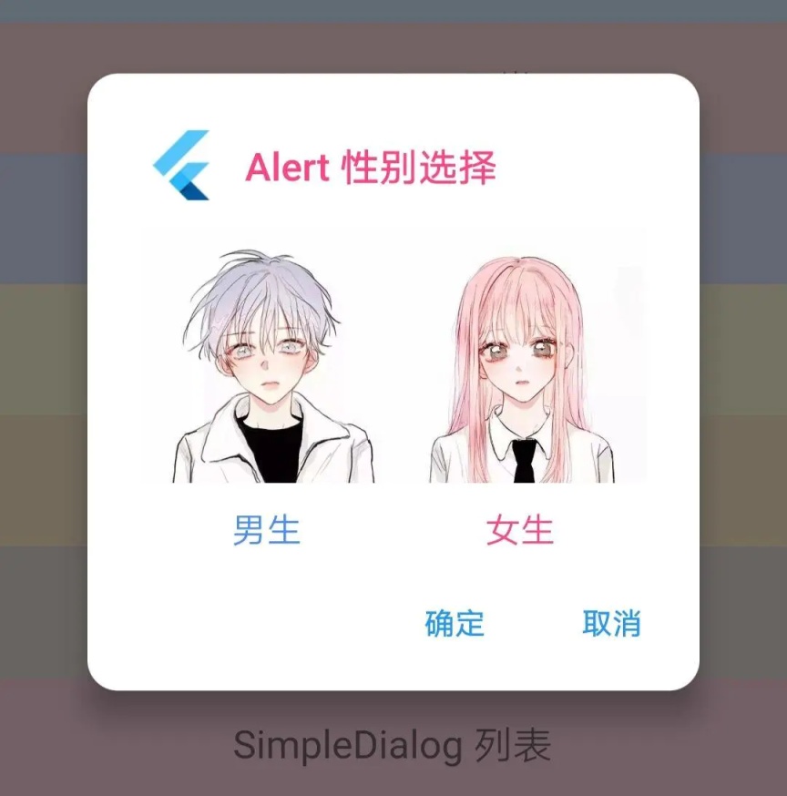 Padding(child: Text('Alert 性别选择'), padding: EdgeInsets.only(left: 12.0)) ]),