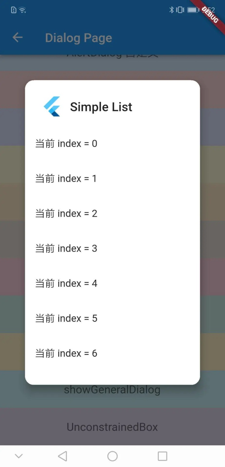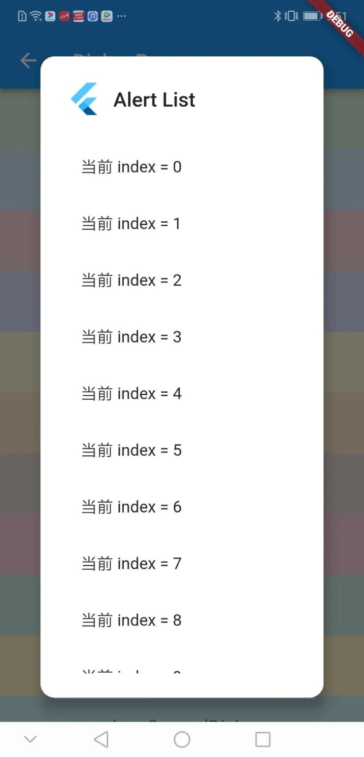 return ListTile(title: Text('当前 index = $index'), onTap: () => Navigator.of(context).pop(index));