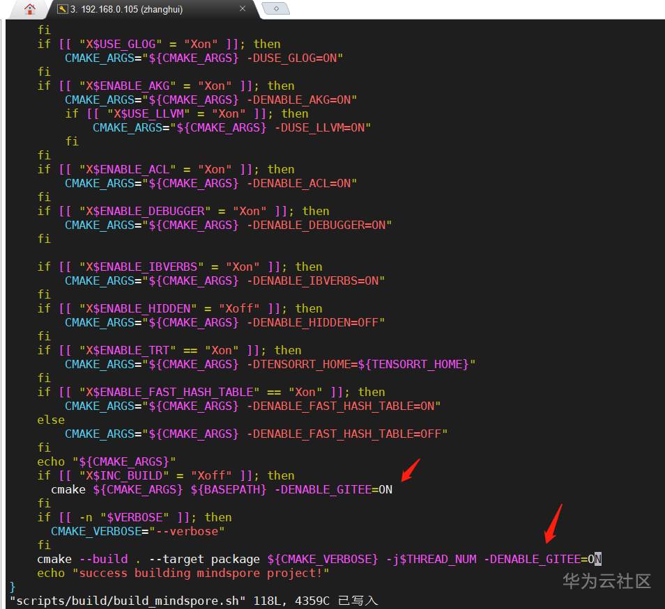 修改 ~/mindspore/scripts/build/build_mindspore.sh,加入-DENABLE_GITEE=ON参数