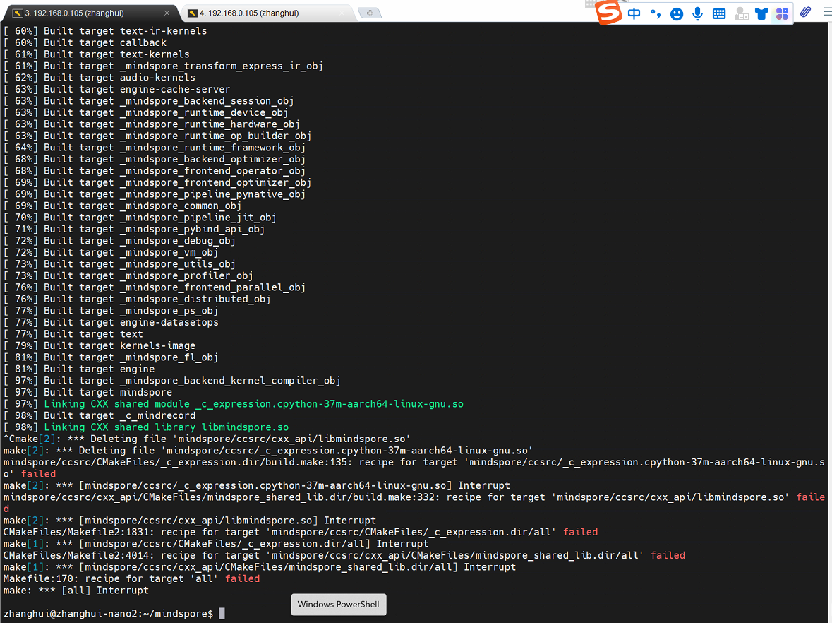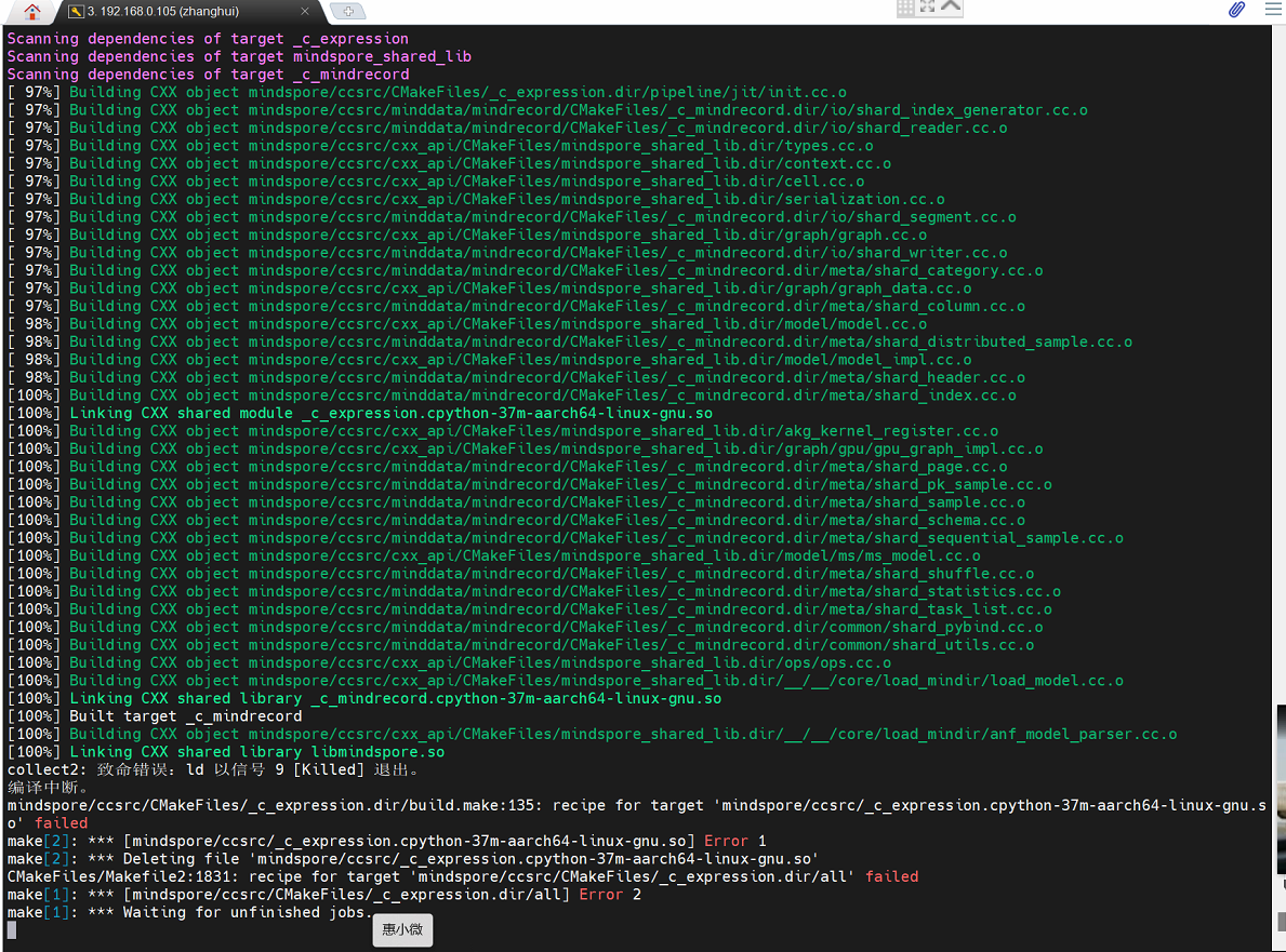 到了 2022.2.12 0:28,张小白看到编译还卡在98%一动不动,于是就CTRL-C暂停了编译: