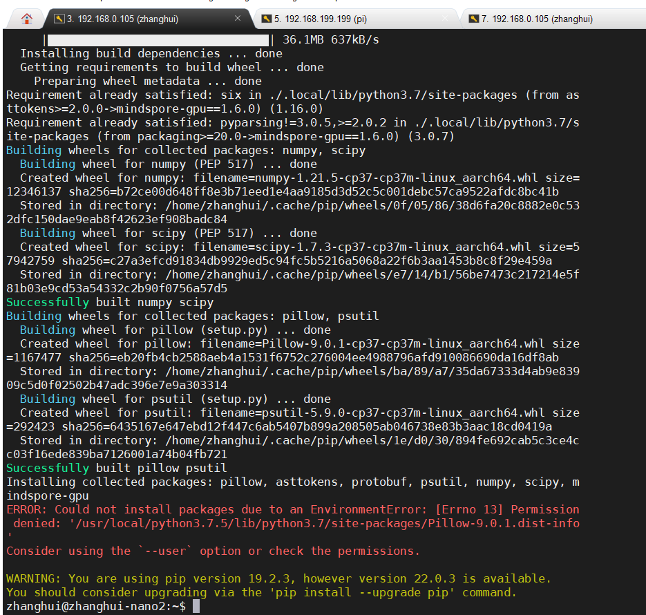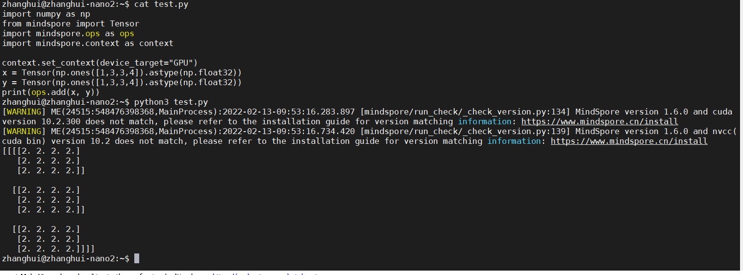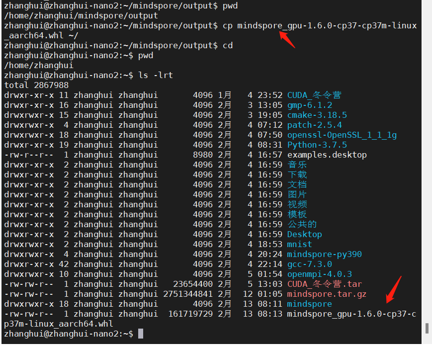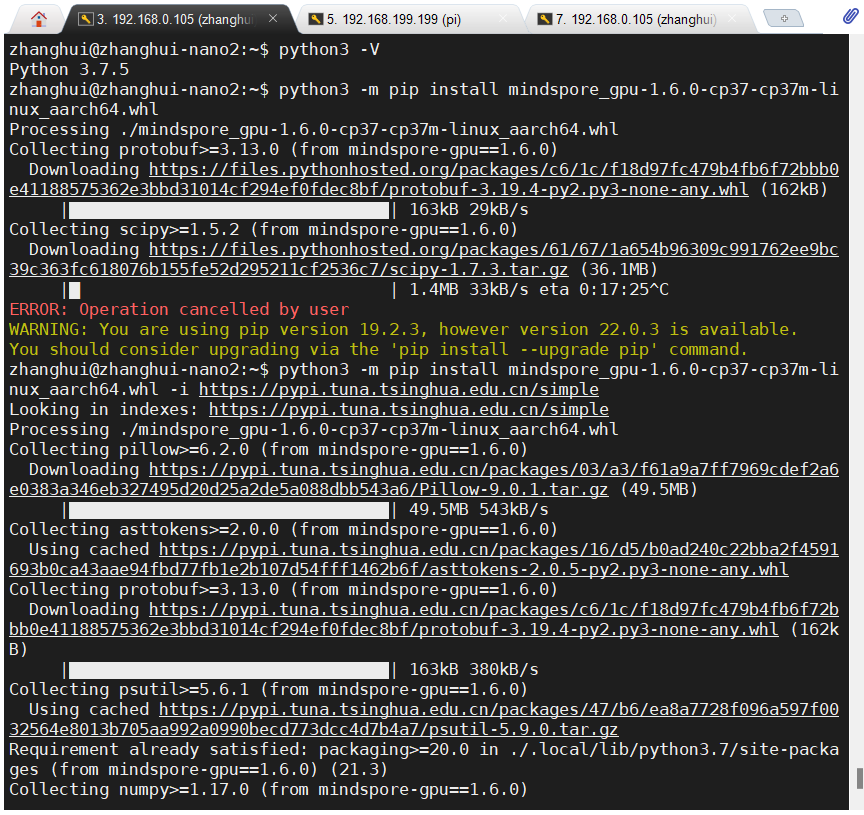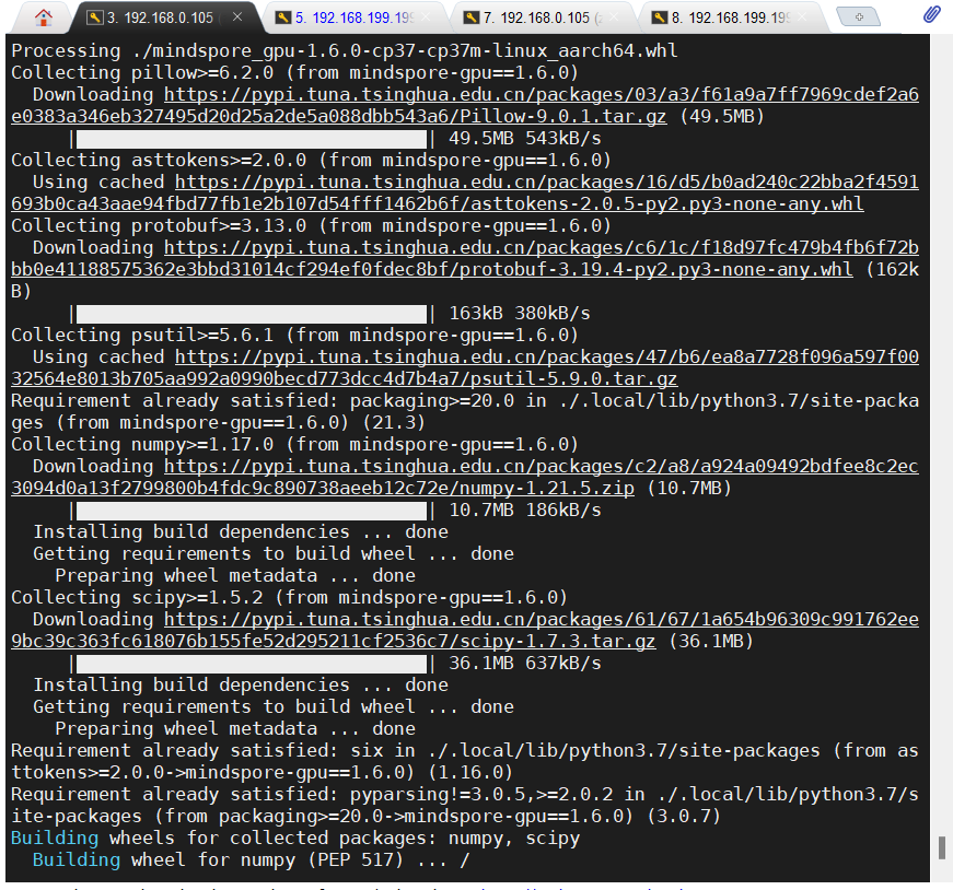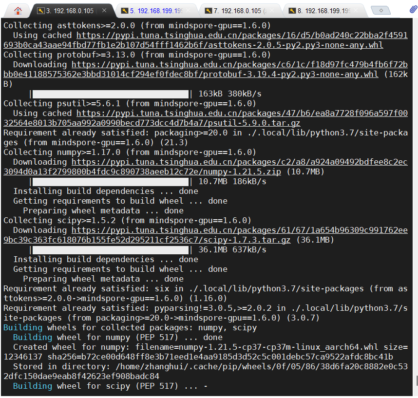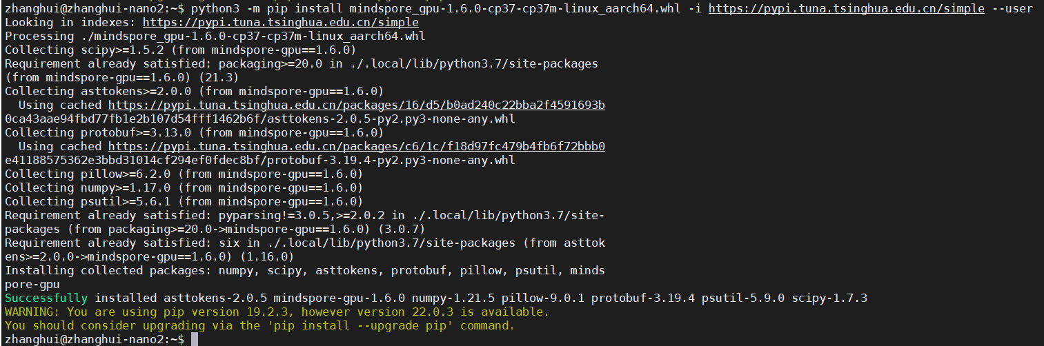 python3 -m pip install mindspore_gpu-1.6.0-cp37-cp37m-linux_aarch64.whl -i https://pypi.tuna.tsinghua.edu.cn/simple --user
