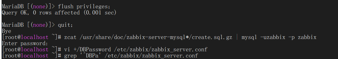#zabbix 数据库用户为 zabbix,密码为 password(可以自行修改),导入 zabbix 数据库信息 ,(mysql -u用户名 -p数据库名)
