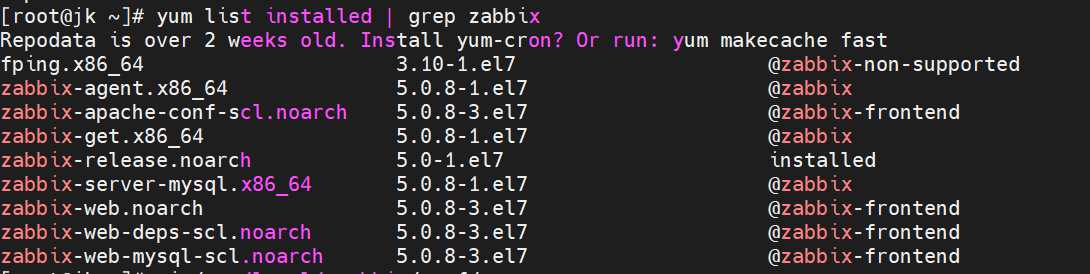 yum -y install zabbix-web-mysql-scl-5.0.8-3.el7.noarch