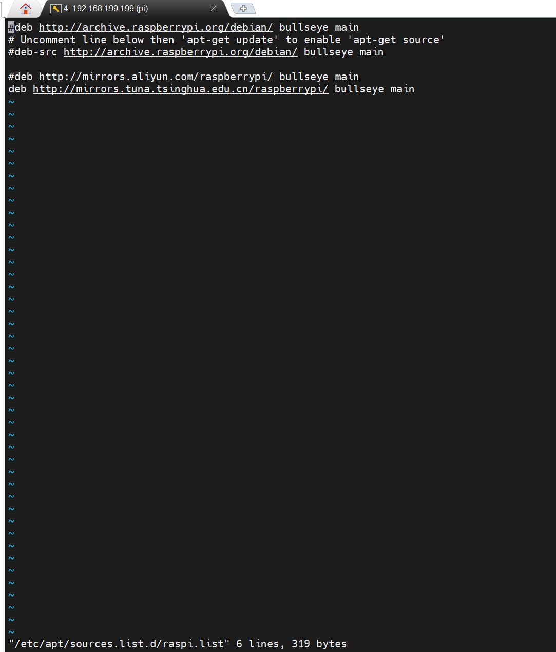 deb-src http://mirrors.tuna.tsinghua.edu.cn/raspbian/raspbian/ bullseye main non-free contrib rpi