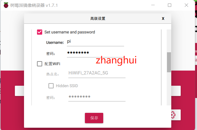 用户名:pi,密码:zhanghui