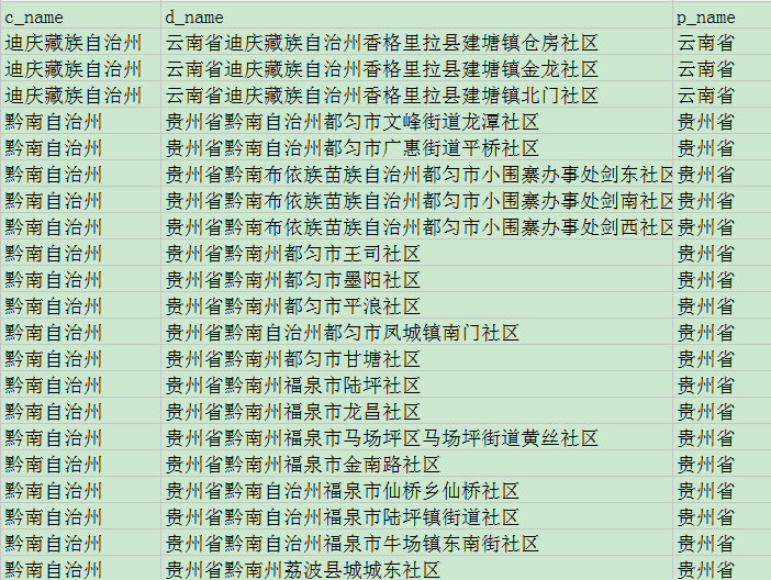 由于网站设计 3 层数据,所以代码嵌套逻辑比较多,cncn.py 文件代码如下,其中 parse 方法获取省份,parse_c 获取城市,parse_s 获取街道,这里如果城市中还分区,省略了各个区县,当然你可以自己扩展出来。(其实这个地方最后一个层级我偷懒了,没有写),重点学习数据在各个 Request 之间的传递。