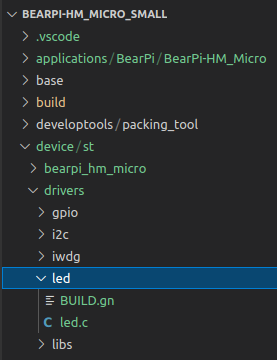在./device/st/drivers路径下新建一个led的目录,用来存放驱动源码文件。