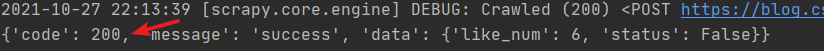 运行爬虫之后,在日志中可以发现成功的点赞了。