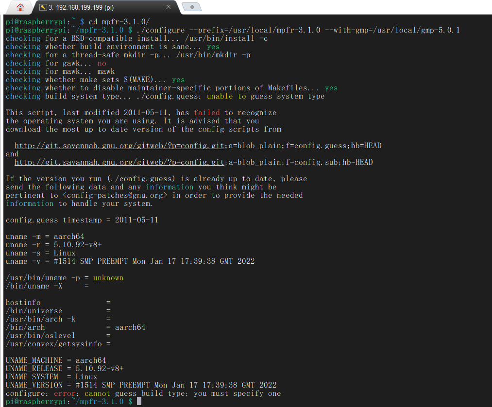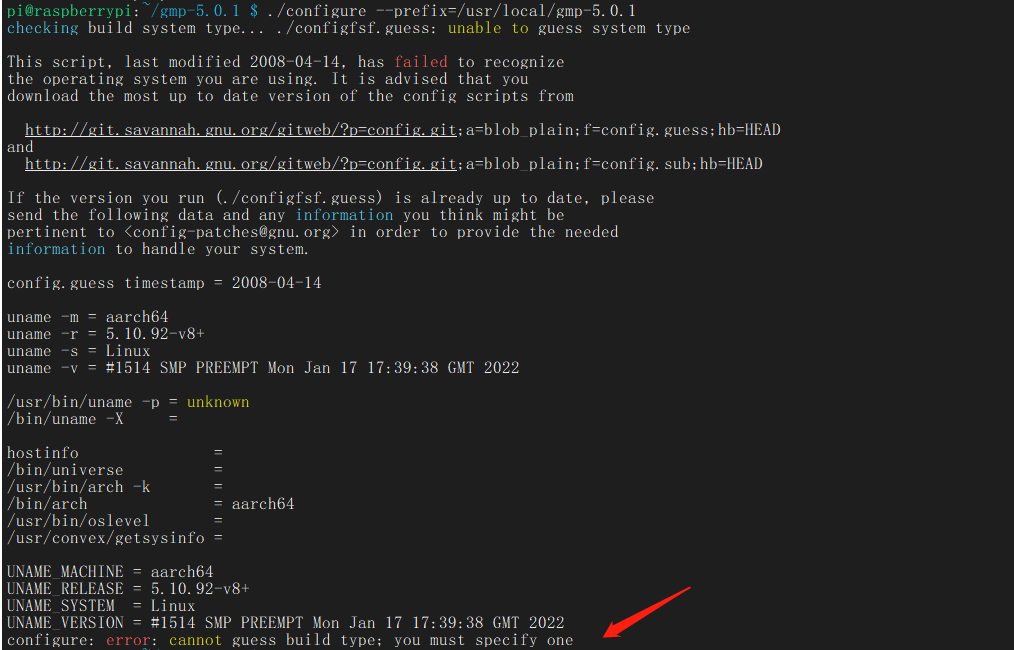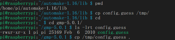 将automake-1.16/lib下的config.guess文件覆盖gmp-5.0.1下的config.guess文件:
