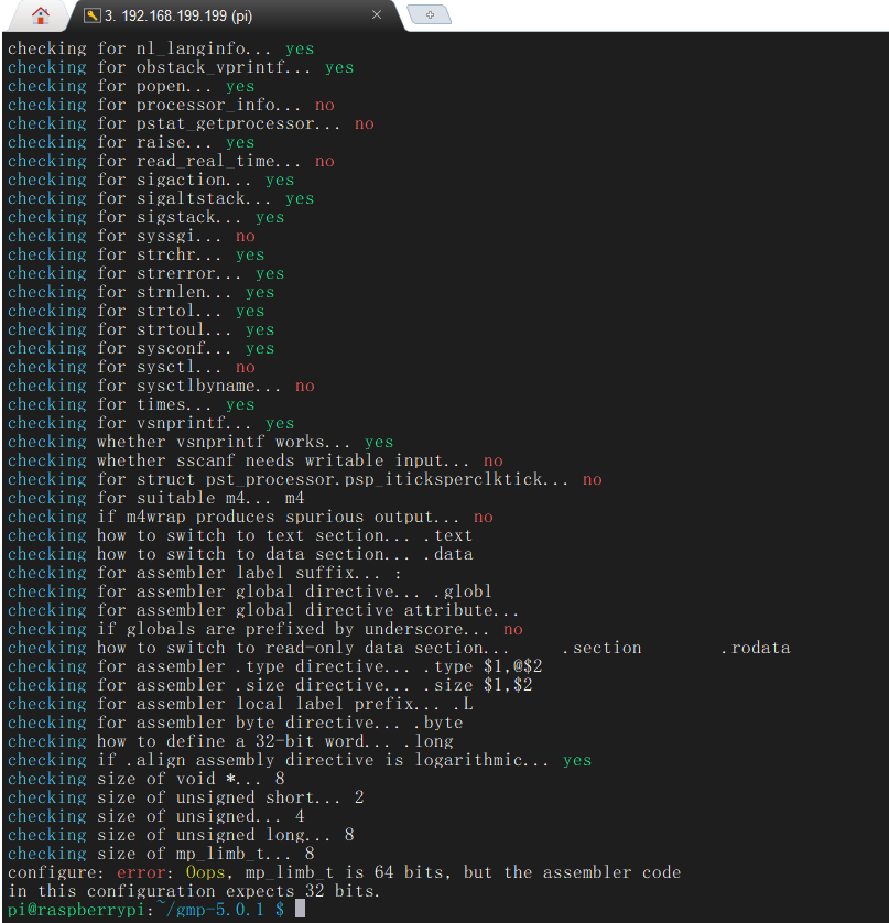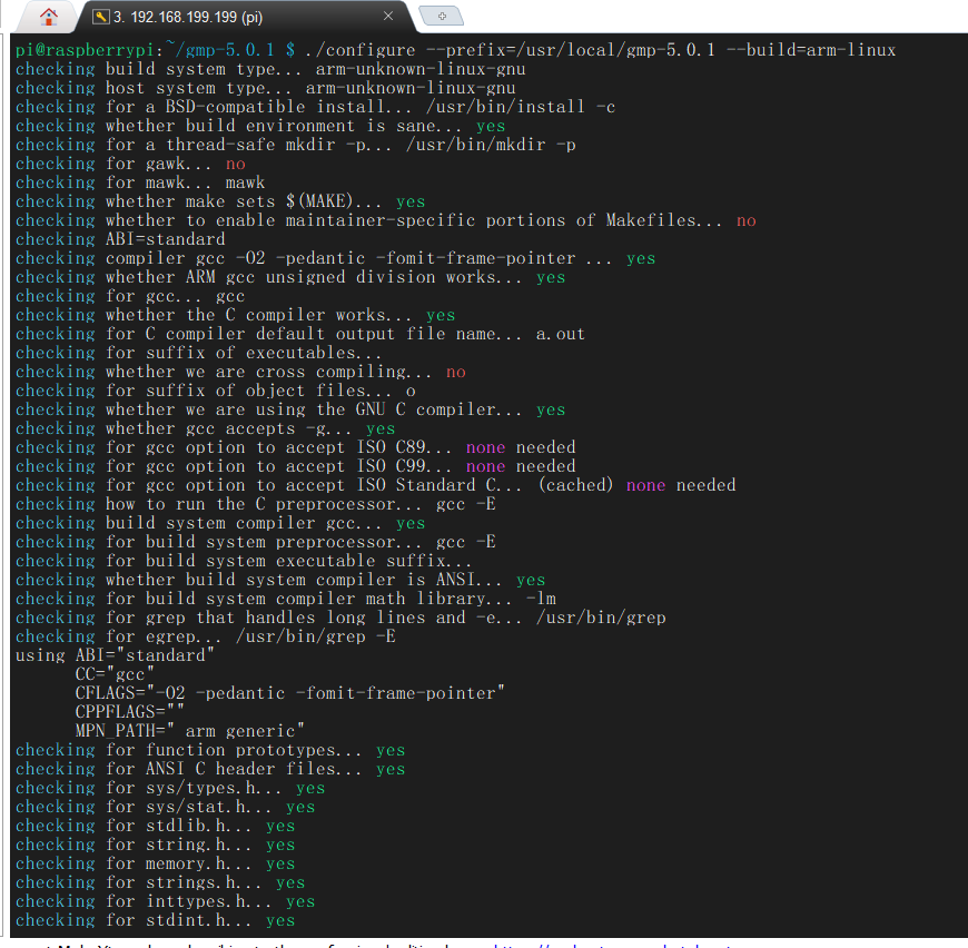 ./configure --prefix=/usr/local/gmp-5.0.1 --build=arm-linux