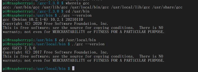 /usr/local/bin/gcc是自己源码编译的7.3.0,/usr/bin/gcc是系统自带的。